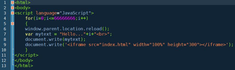 Nos, maga a kód semmi extrát nem tartalmaz csak egy nagy ciklusból áll, amit megfejeltem annyival, hogy iframe-eket ágyaz az oldalba, és 0 másodpercenként meghívja magát. A legtöbb böngésző a ciklusokra és az átirányításokra eléggé fel van készülve és szimplán a ciklusra kiírja, hogy ez így nem lesz jó, de mivel önmagát hívja meg, hiába állítjuk le a script futását a betöltött oldal azonnal újra kezdi, és mikor a memóriánkat teljesen felzabálta játszadozhatunk, hogy a megszakítás után gyorsan betudjuk zárni az oldalt. 🙂