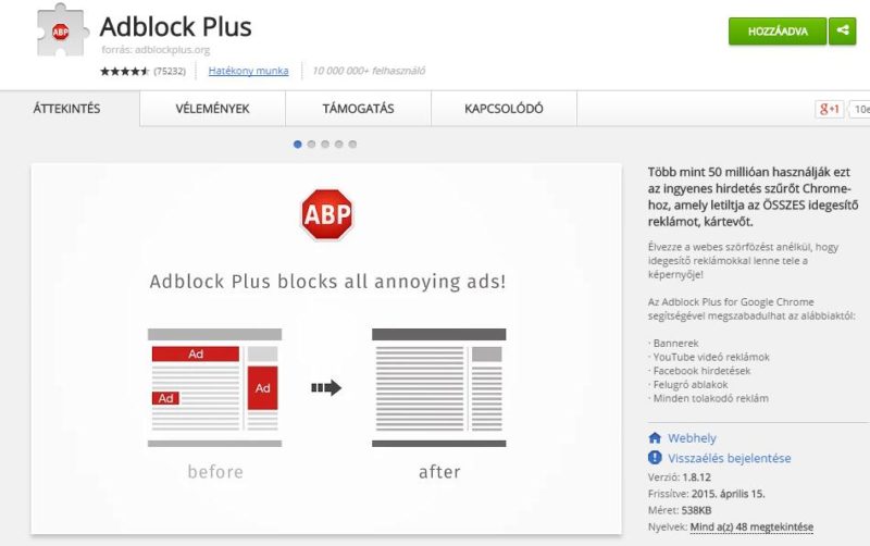 - Reklámok blokkolása, korlátozása - Az oldal betöltési ideje növekszik ha egy reklámblokkolót használunk. - Én az AdBlock Plus-t használom. Letölthető innen: Chrome kiegésztők