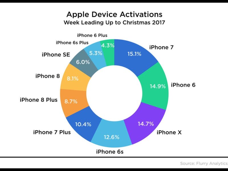 A frissen napvilágot látott hírek szerint közel sem a legújabb készülékükkel aratták le a babérokat. A legtöbbet eladott készülék ugyanis a tavaly megjelent iPhone 7 volt. Ez megerősíti a Bloomberg által nyilvánosságra hozott információt mely szerint az Apple 35 millió példányról 25 millióra készülékre csökkentette az első negyedév eladási terveit.